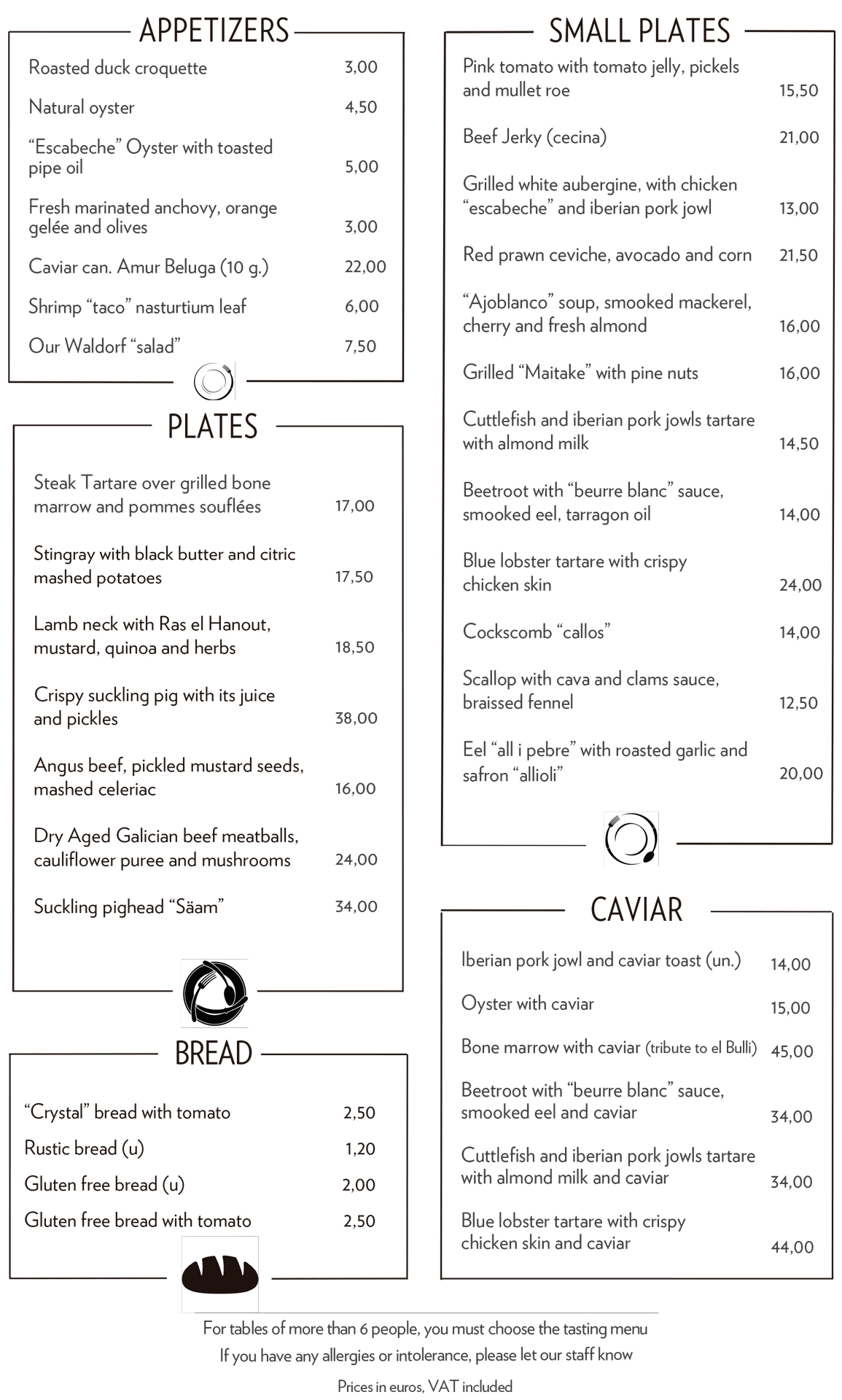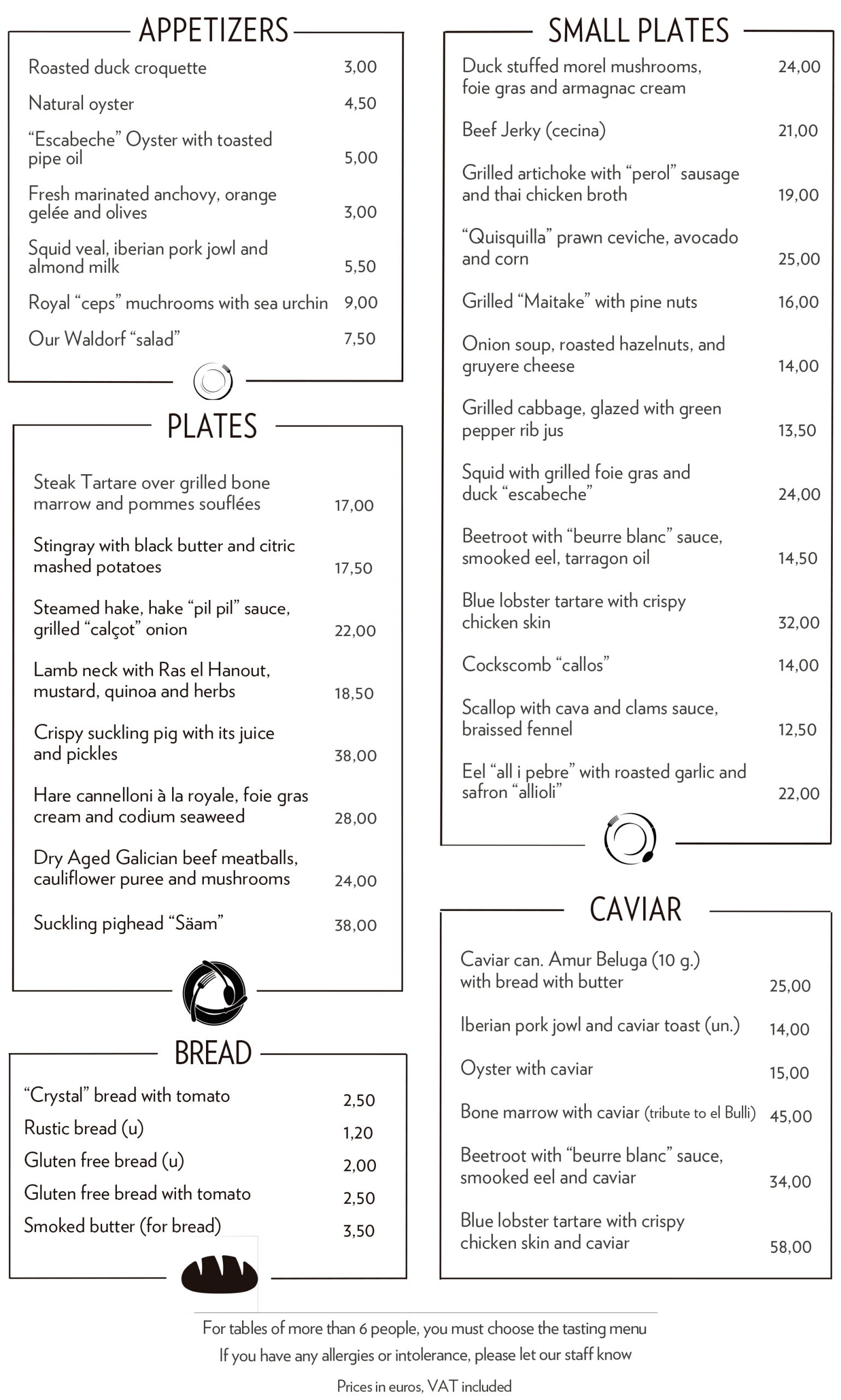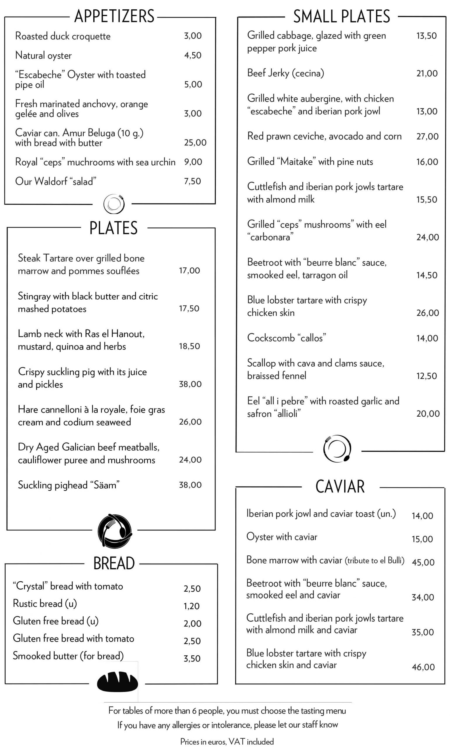 SUCULENT’S MENU Enjoy the menu of Suculent, in a more agile and informal service, freely choosing dishes from our menus.
